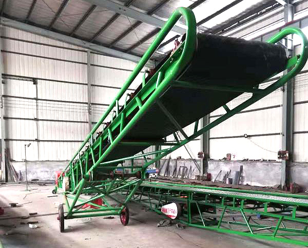 裝車卸車用移動(dòng)帶升降皮帶輸送機(jī)不限制使用場(chǎng)地,皮帶機(jī)下面帶有輪子,可來回移動(dòng)、是一種比較方便 的裝、卸車用的帶式輸送機(jī),裝卸小麥、玉米、大豆等散裝、袋裝等不規(guī)則物體,升降帶移動(dòng)代替了人工裝卸車,提高了工作效率。9米移動(dòng)皮帶輸送機(jī) 皮帶運(yùn)輸機(jī)構(gòu)造